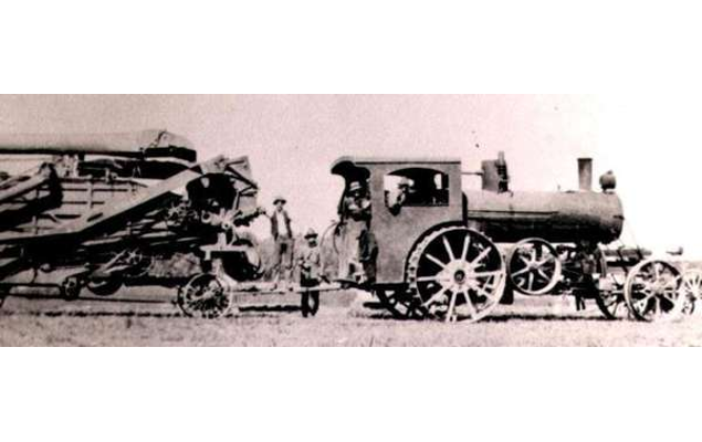 This engine was used around Mead, Co. until 1915 when it was purchased by Jerome DeBacker for use in threshing and plowing in the Boulder area.It was in considerable disrepair when purchased. Jerome completed many mechanical repairs before putting the engine in service. He also added some touches of his own including a Union Pacific bell and several whistles.